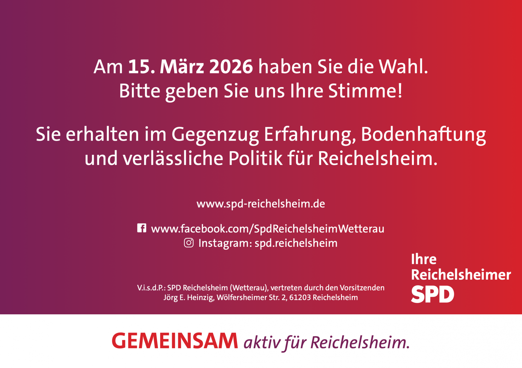 Seit 2021 hat die SPD-Fraktion Verantwortung übernommen und Reichelsheim Schritt für Schritt weiterentwickelt.